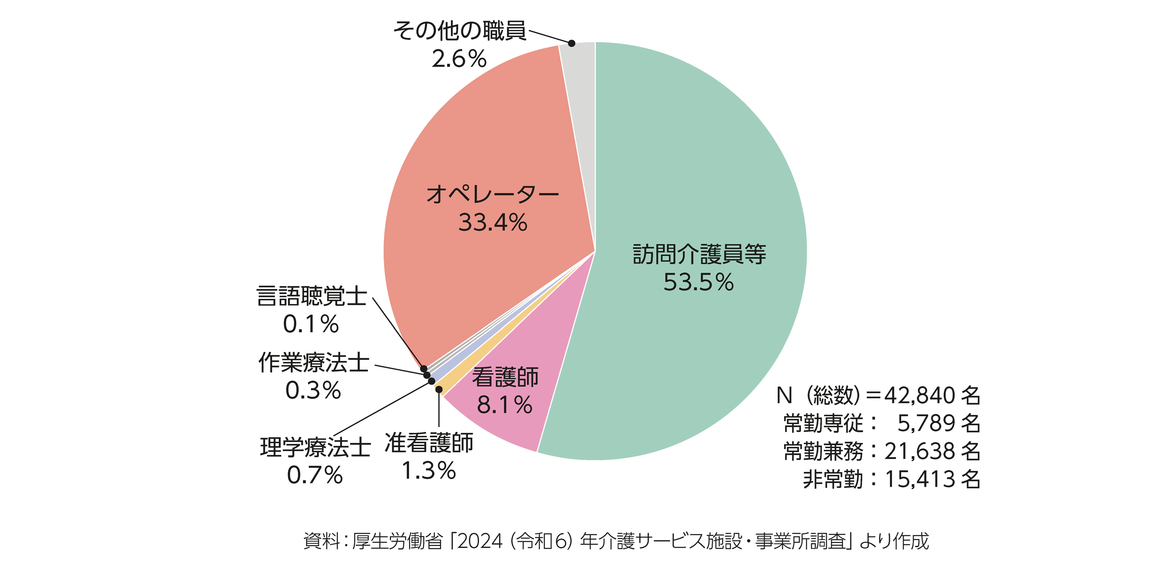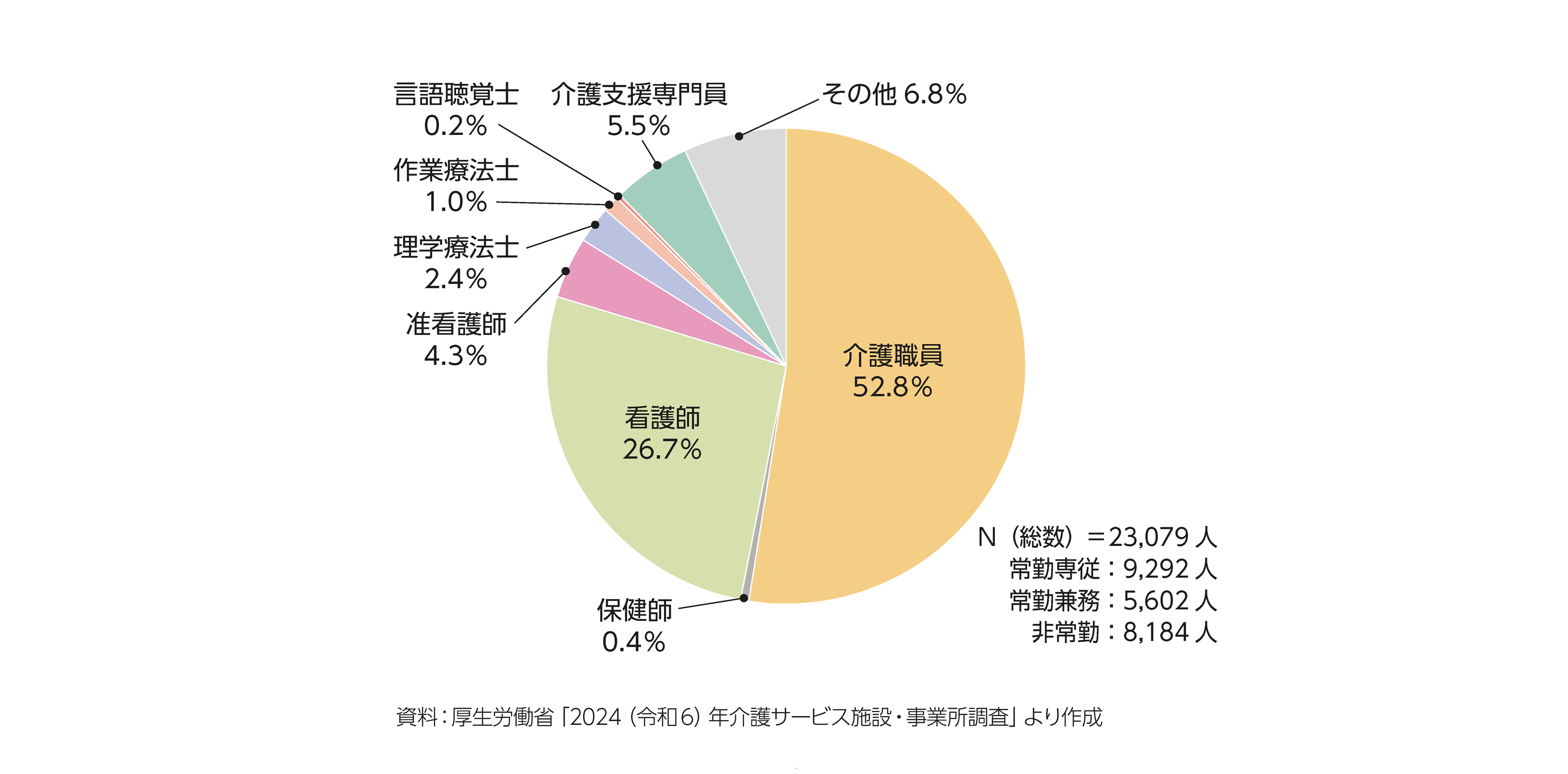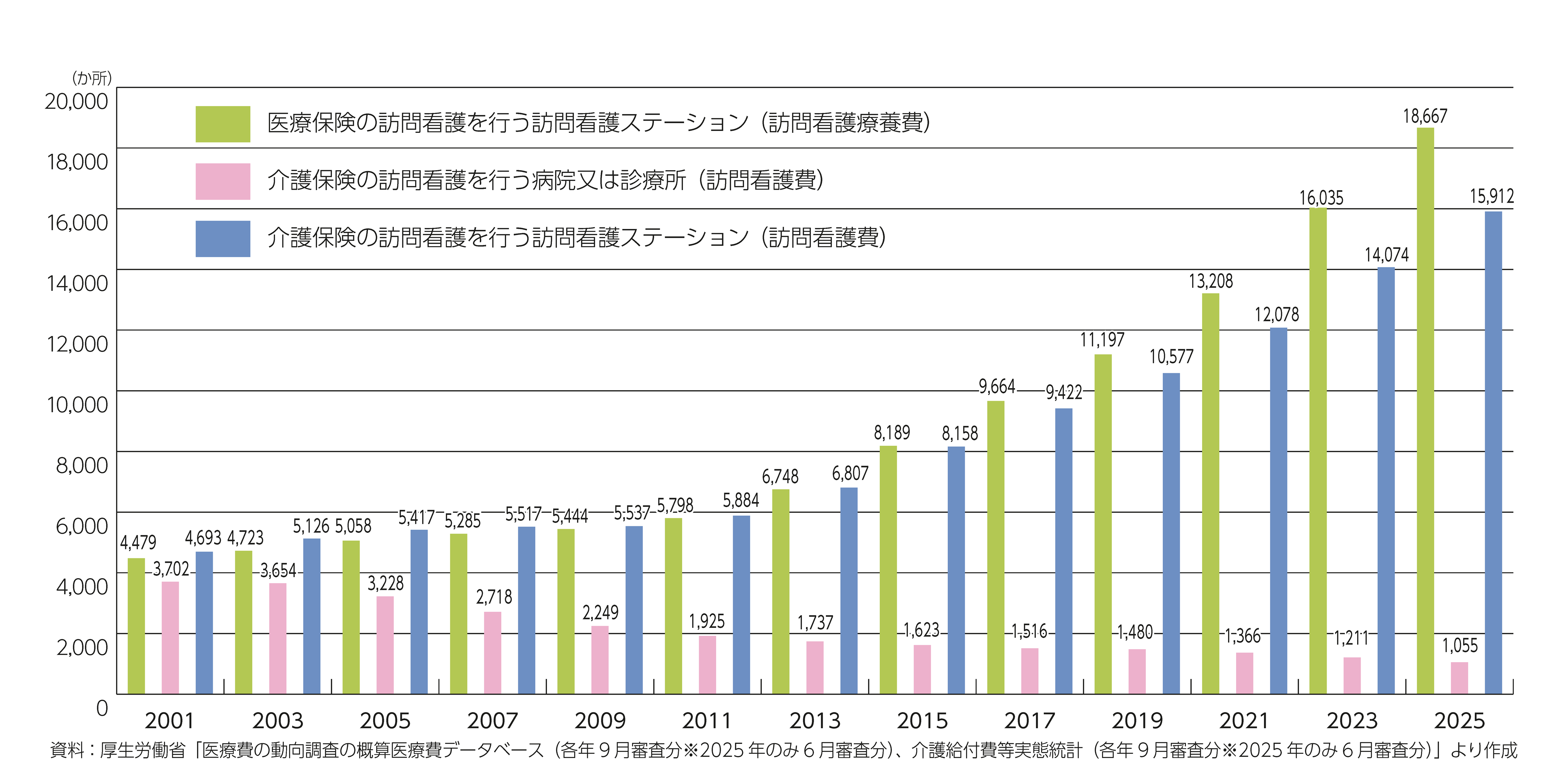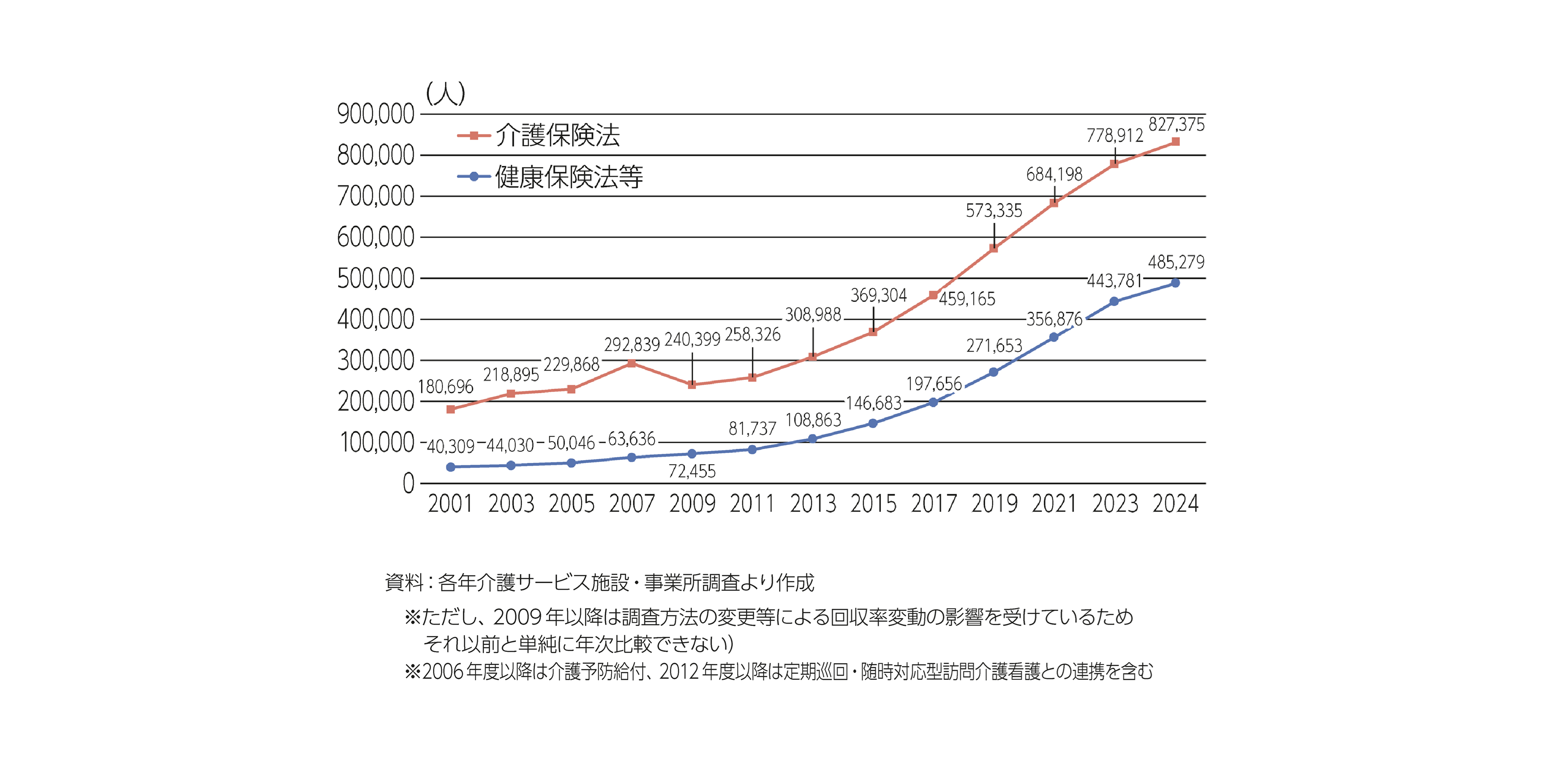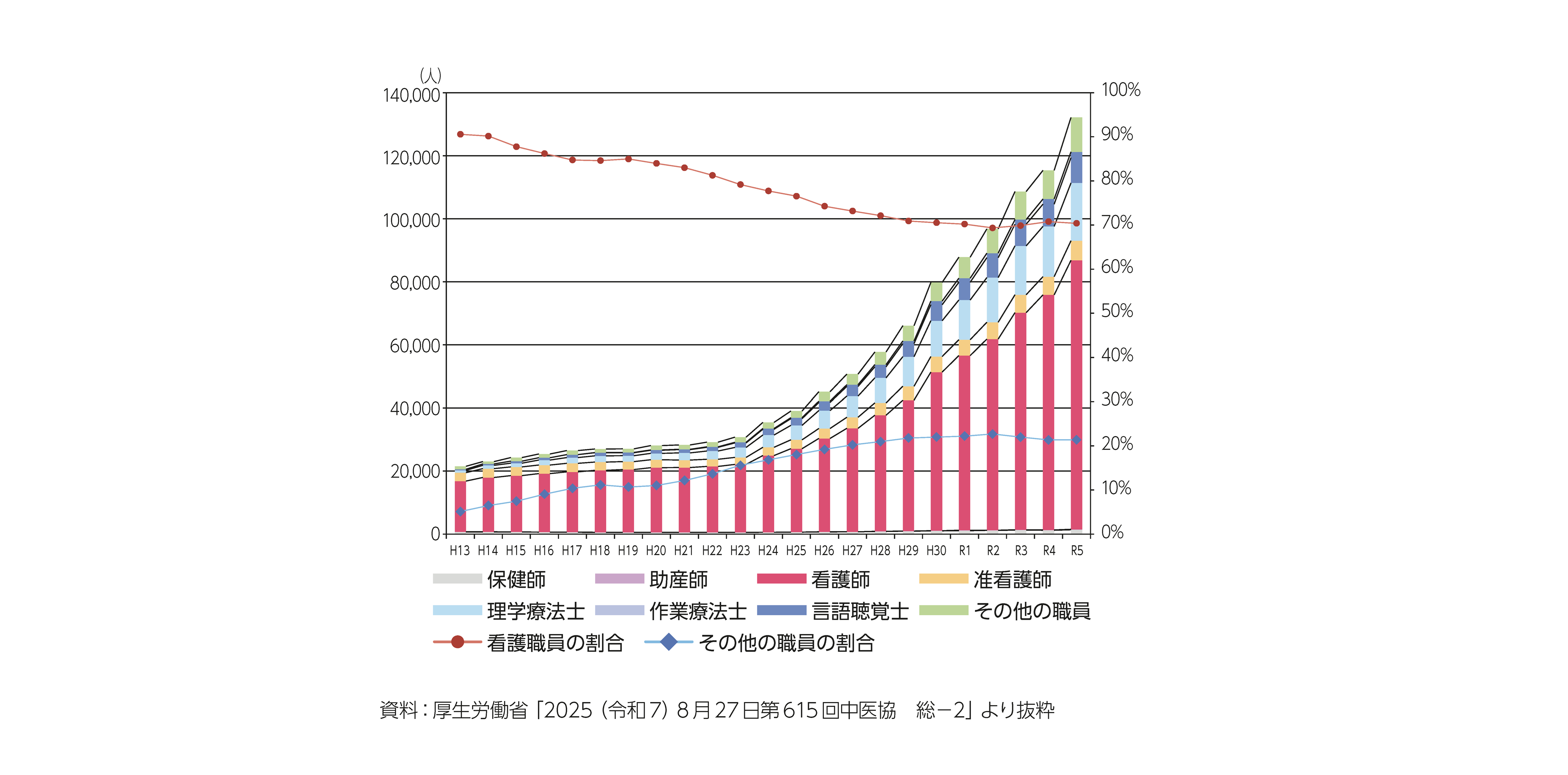 図表5 訪問看護ステーションにおける職種別の従事者数の推移(常勤換算)