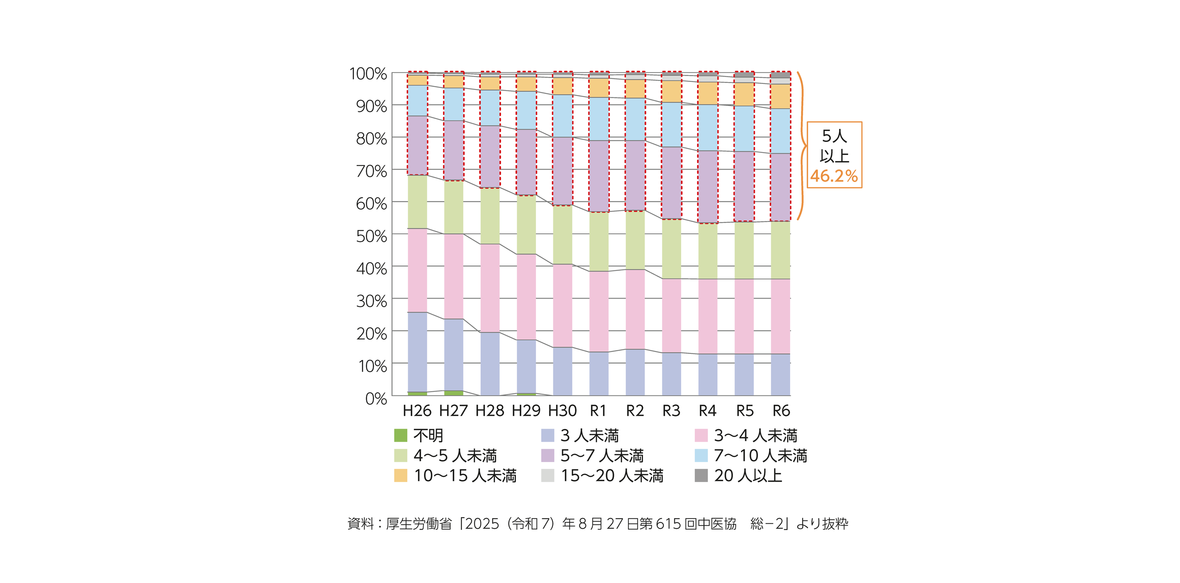 図表4 看護職員規模別の訪問看護ステーション数(割合)の推移