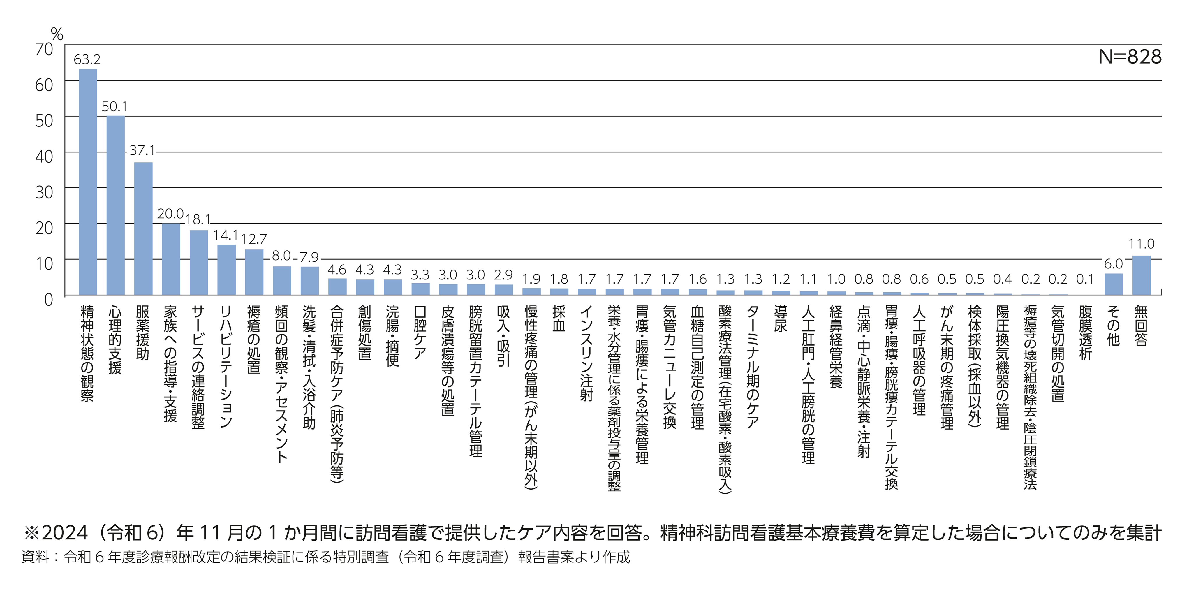 図表12 精神科訪問看護において提供したケア内容(複数回答)